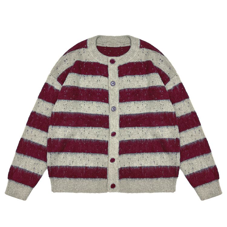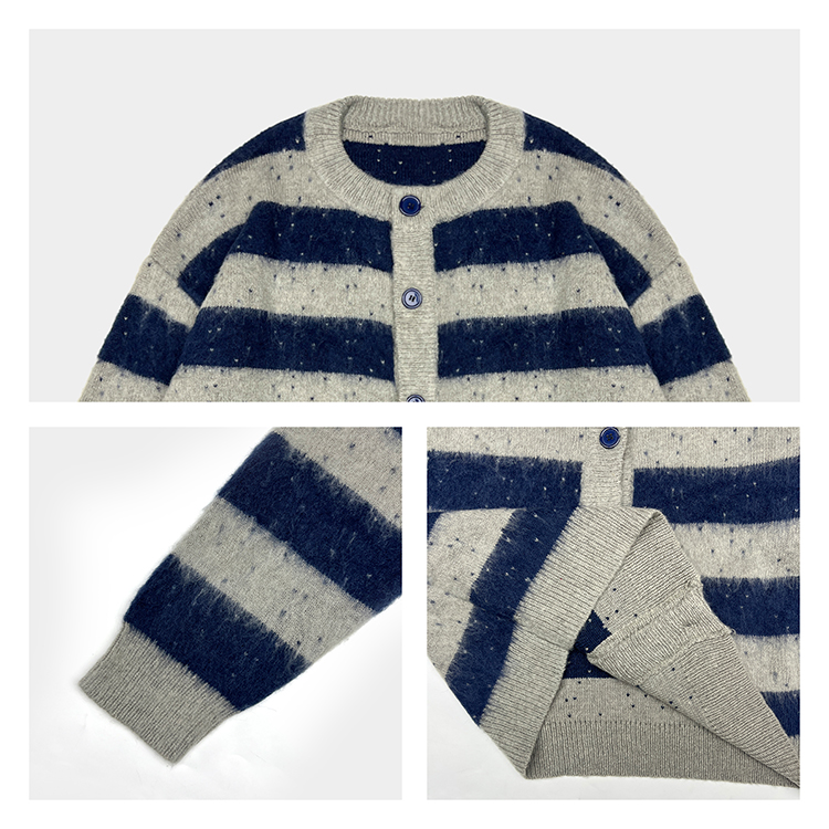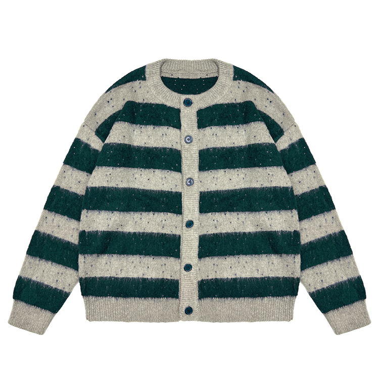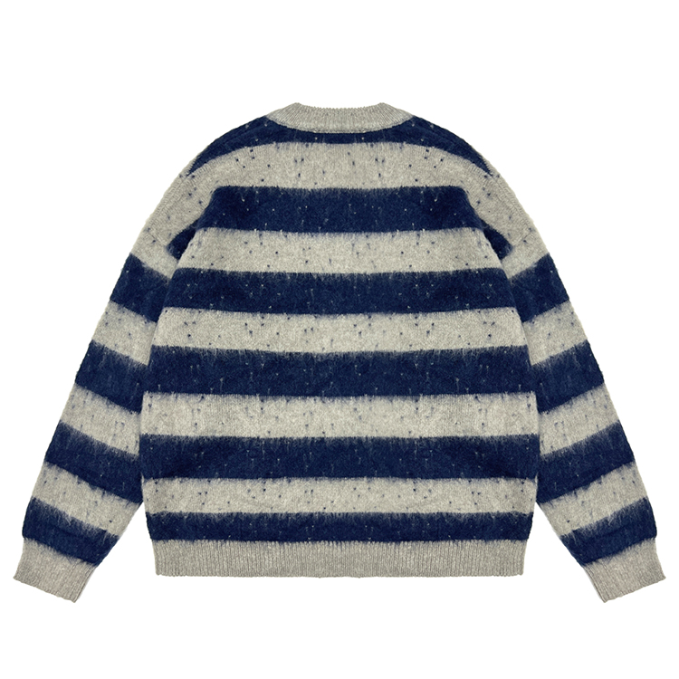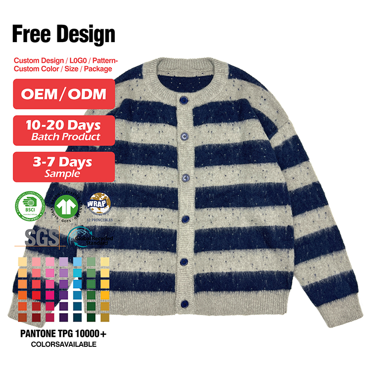 - Custom Logo Cardigan Men Brushed Mohair Fuzzy Oversized Jacquard Crew Neck Knit Sweater Drop Shoulder Knitwear