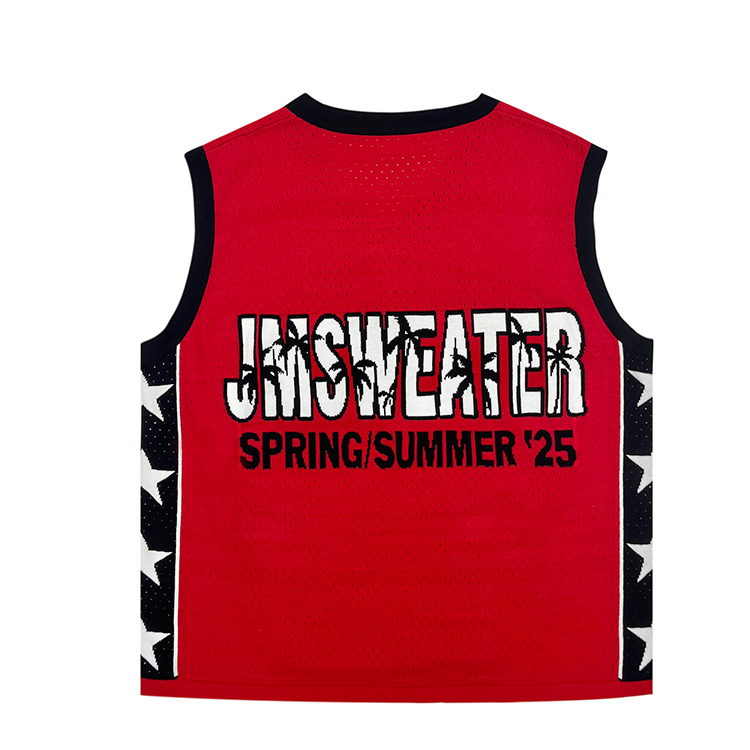 - Custom OEM ODM Jacquard Letters Knitted Pullover Knitwear Sleeveless V Neck Knit Sweater Vest for Men