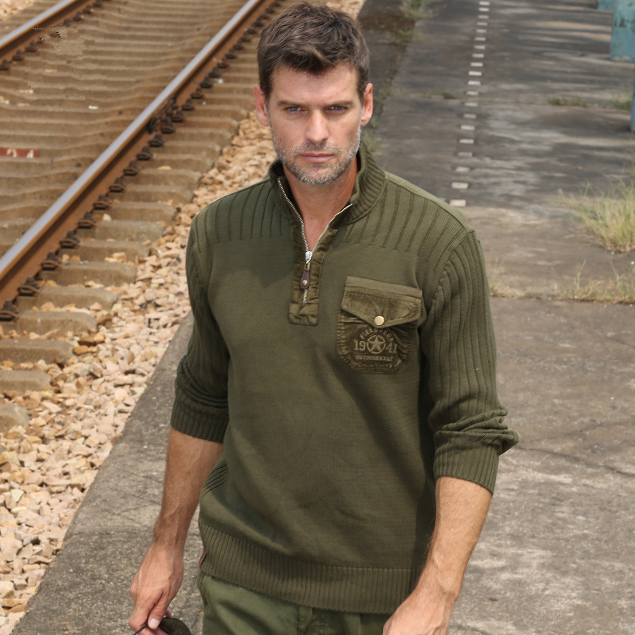 - Custom plus size army sweater half zipper men wool commando sweater