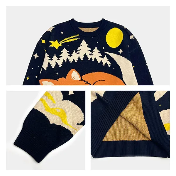 - Refined Intarsia Scenic Knitwear: Custom Sleeping Fox Graphic Pullover