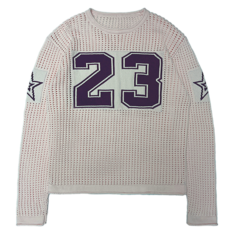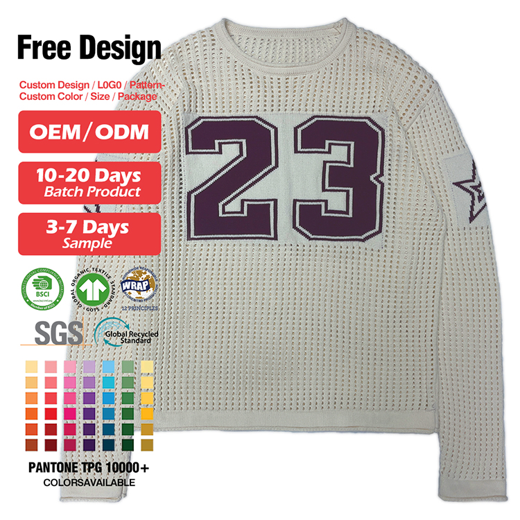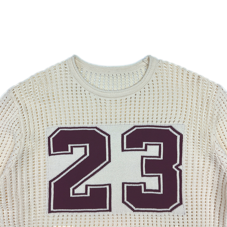 - Custom Men Casual Long Sleeve Knitted Jersey Jacquard Cotton Streetwear Pullover Crew Neck Jumper Hollow Knit Sweater