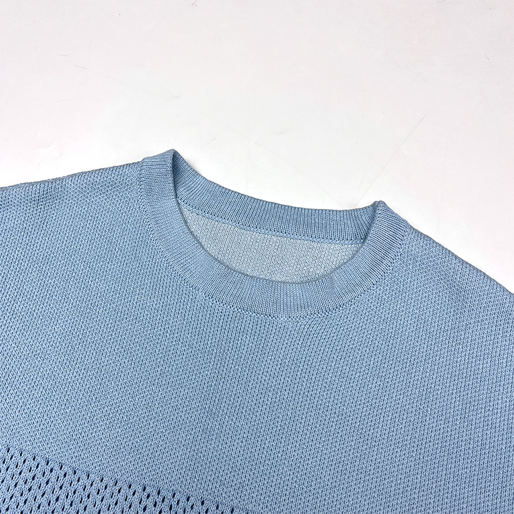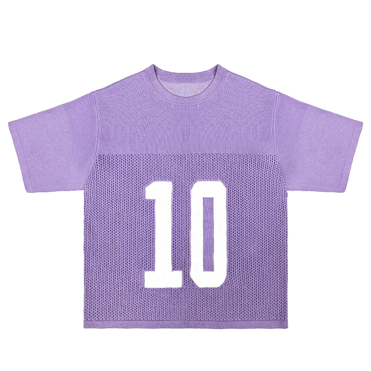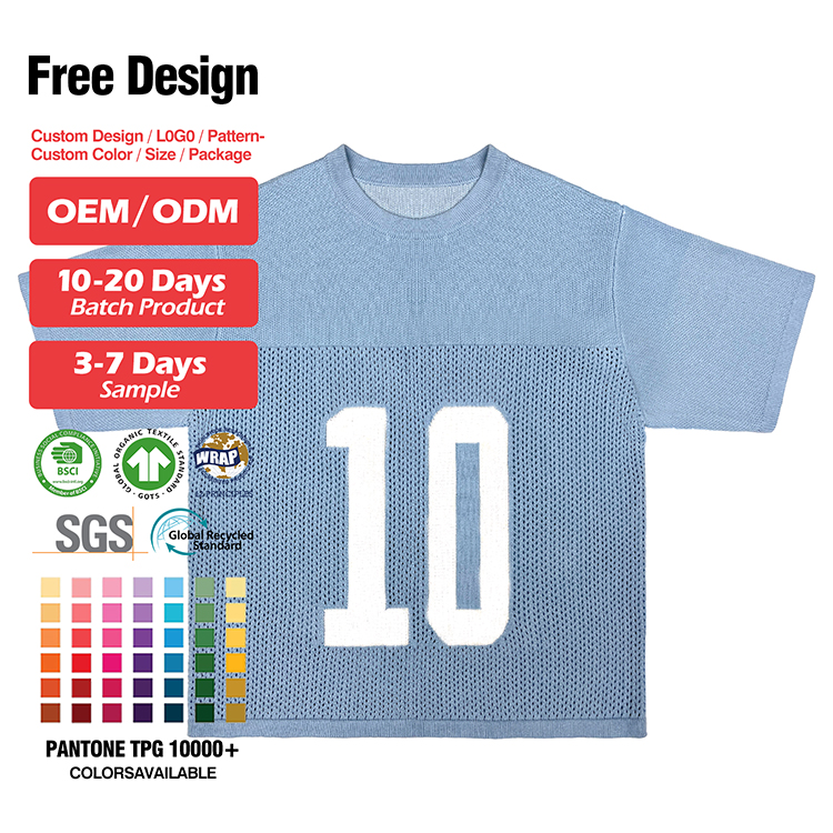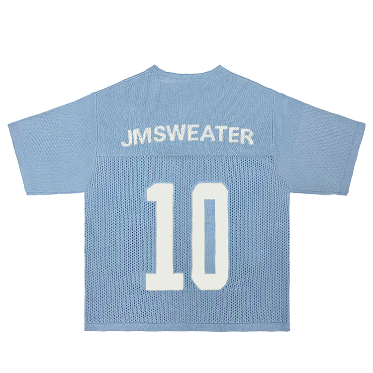 - Custom logo V-neck short sleeve knit top, crochet texture knitwear designed for football and basketball jerseys
