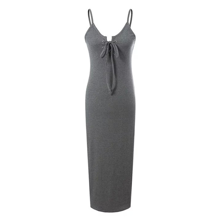 - Sexy deep V neck design grey sleeveless ladies long dress