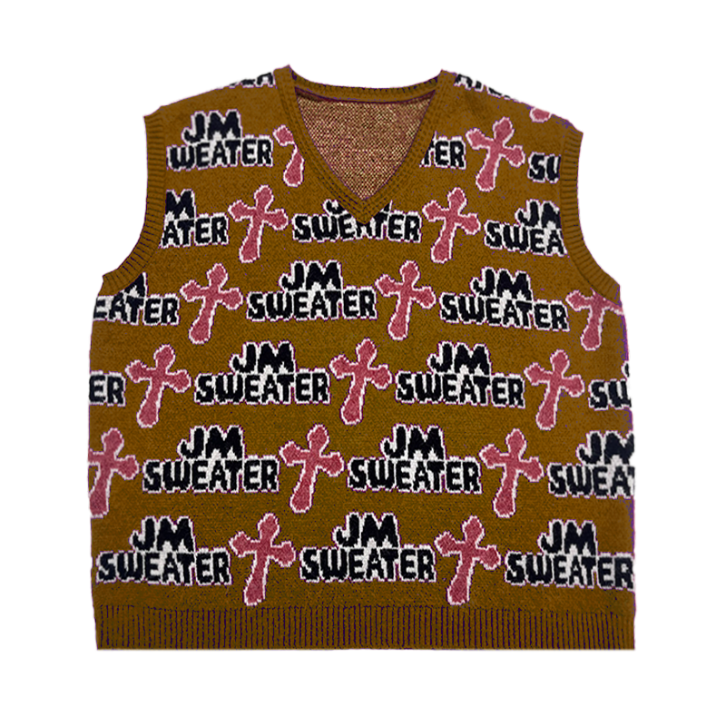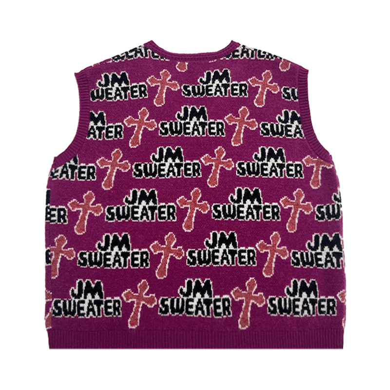- Custom Logo Oem & Odm Men Sweater Vest Pullover Jacquard Pattern Sweater Sleeveless Knit Top Knit Sweater Vest Men