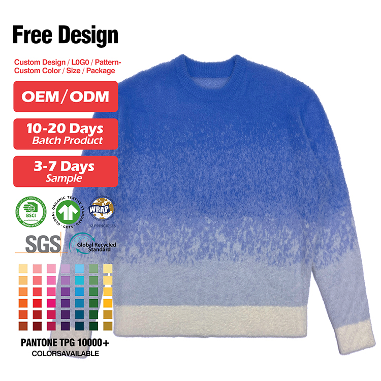 - Custom LOGO OEM & ODM Men Sweater Jacquard Pattern Knitwear Winter Jumpers Mohair Knit Top Crew Neck Knitted Sweater