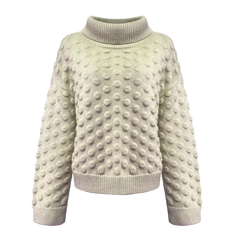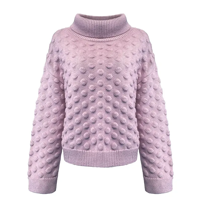 Popcorn Bobble Knit Turtleneck Sweater: 3D Textured Chunky Pullover with Ribbed Trim