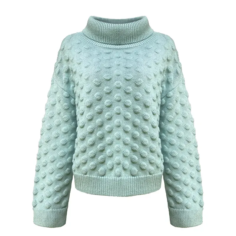 - Popcorn Bobble Knit Turtleneck Sweater: 3D Textured Chunky Pullover with Ribbed Trim
