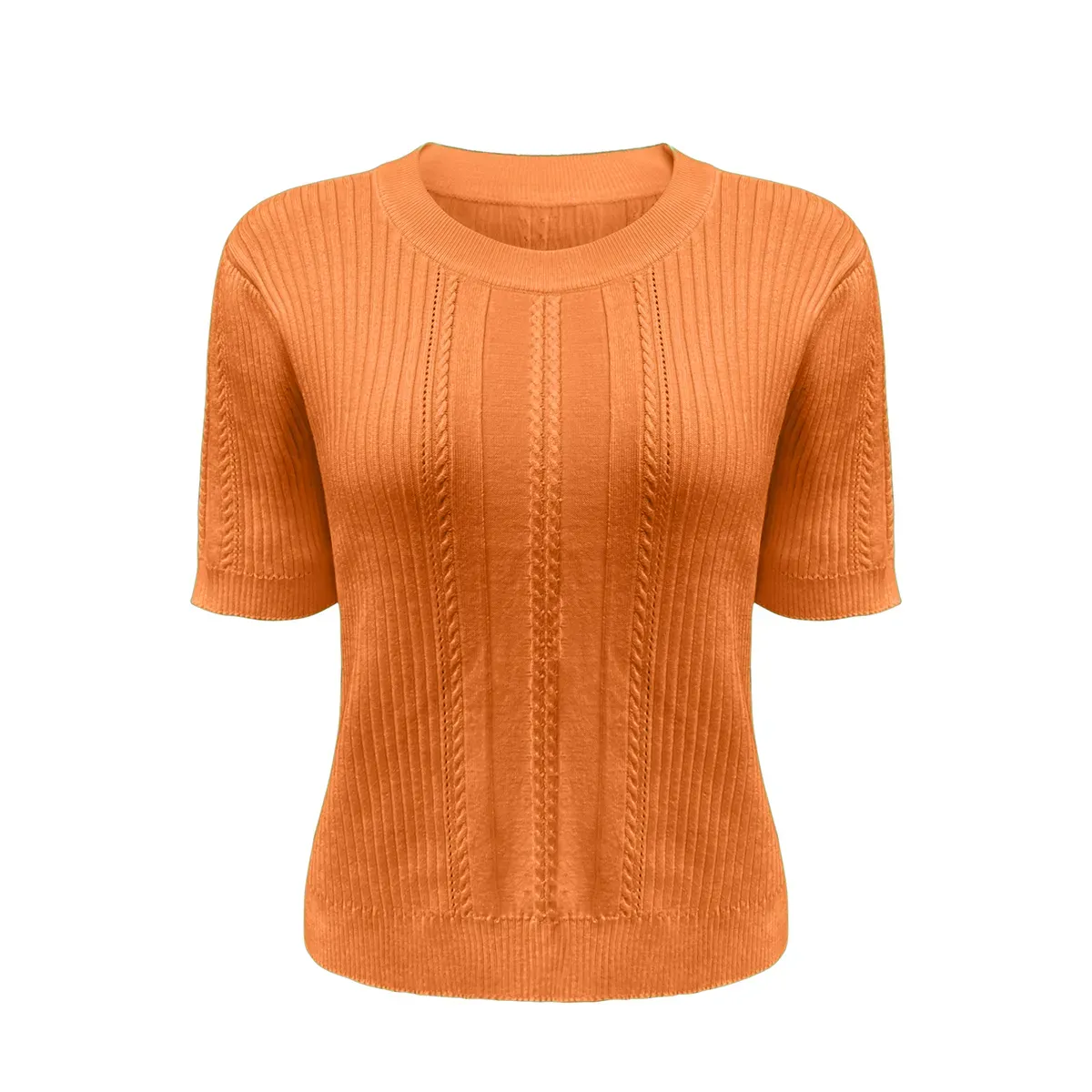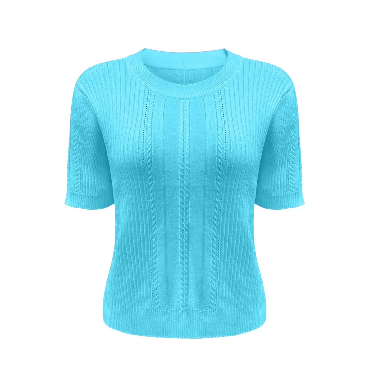 Detailing: Designed with a clean-finished round neckline and feminine short sleeves. The seamless linking at the shoulders and armholes reflects our commitment to high-end manufacturing standards.